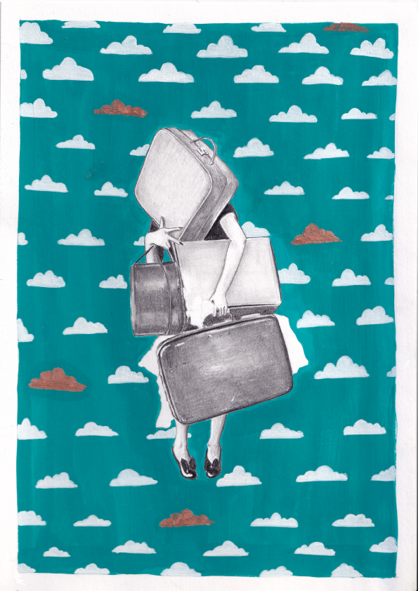 • illustration d'un couple de personne âgé sur une vespa bleu, roulant de la gauche vers la droite de l'image. Le tout sur un décors psychédélique coloré.